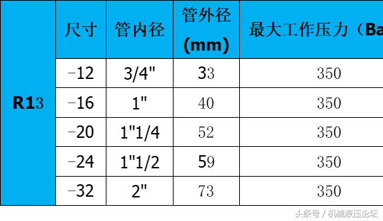 附:常用液压胶管内外径及最高工作压力参数