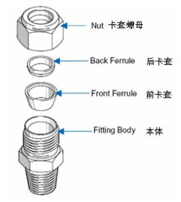 Swagelock接头即世伟洛克接头,也是一个美国品牌,俗称卡套。Swagelock接头是一种实现小间隙密封的结构,通过设计金属密封机构,实现密封。Swagelok卡套管接头的密封结构如图所示。