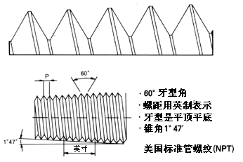 管螺纹:英制PS、PT、PF ;美制NPS、NPT、NPTF、NPSM